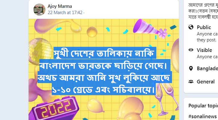 ‘সুখী দেশের তালিকায় নাকি বাংলাদেশ ভারতকে ছাড়িয়ে গেছে। অথচ আমরা জানি সুখ লুকিয়ে আছে ১-১০ গ্রেডে এবং সচিবালয়ে।’