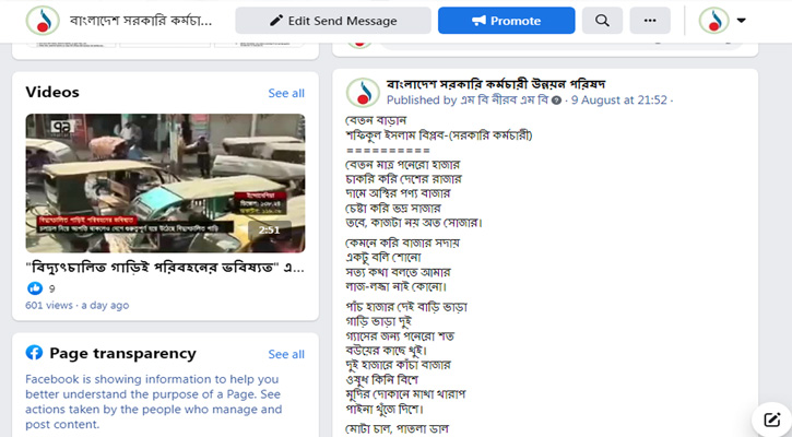 এরই জেরে শফিকুল ইসলাম বিপ্লব নামে এক সরকারি কর্মচারী একটি কবিতা লিখেছেন সামাজিক মাধ্যমে। ‘বেতন বাড়ান’ শিরোনামে তার কবিতাটি ইতোমধ্যে সরকারি চাকরিজীবীদের ফেসবুক গ্রুপে সারা ফেলেছে।