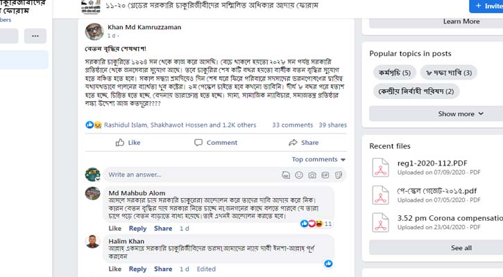 বেতন বৃদ্ধির শেষধাপ!-শিরোনামে একজন সরকারি কর্মচারী লিখেছেন-‘সরকারি চাকুরিতে ১৯৯৪ সন থেকে কাজ করে আসছি। বেচে থাকলে হয়তো ২০২৮ সন পর্যন্ত সরকারি প্রতিষ্ঠানে থেকে জনসেবার সুযোগ আছে। তবে চাকুরির শেষ কটি বছর হয়তো বার্ষীক বেতন বৃদ্ধির সুযোগ হতে বঞ্চিত হতে হবে। সকাল সন্ধ্যা শ্রমদিয়েও দিন শেষ ঘরে ফিরে পরিবারে সদস্যদের ভরনপোষণের দ্বায়িত্ব যথাযথভাবে পালনের ব্যার্থতা খুব কষ্টের। ৯ম পেস্কেল চাইতে হবে কখনো ভাবিনি। দীর্ঘ ৮ বছর পরে হতাশ হতে হচ্ছে, চিন্তিত হতে হচ্ছে, বেদনায় ভারাক্রান্ত হতে হচ্ছে। সাম্য, সামাজিক ন্যাবিচার, সমাজতন্ত্র প্রতিষ্ঠার লক্ষ্য উদ্দেশ্য আজ কতদূরে????’
