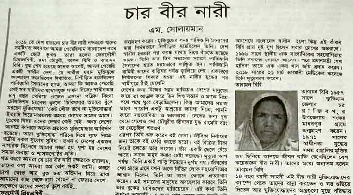 সম্প্রতি সাপ্তাহিক ‘একতা’ পত্রিকায় আমার একটি কলাম ছাপা হয়েছিল দেশের চার বীর নারী নিয়ে। সেখানে উল্লেখ করেছিলাম দেশের চার বীর নারীর সংগ্রামী জীবনের কিছু কথা। নিজেদের সব কিছু হারিয়ে পথে বসেছিলেন এসব নারীরা। যাদের কথা বলছিলাম তারা হলেন- ফেরদৌষি প্রিয়ভাষিণি, রমা চৌধুরী, কাকন বিবি ও তারামন বিবি। তারা জীবদ্দশায় বাঁচার জন্য অনেক সংগ্রাম করে গেছেন, কই কেউতো তখন তাদের পাশে দাঁড়াননি। মুক্তিযুদ্ধের পর এক বুক কষ্ট-দুঃখ-যন্ত্রণা নিয়ে বীর নারীরা তাদের আপনজনদের কাছে ফিরে গিয়েও কোথাও ঠাই মেলেনি তাদের। ধর্ষকেরা নাকি তাদের ইজ্জত নষ্ট করে ফেলেছে, তার আর ইজ্জত নেই, কাজেই স্বামী তাকে ঘরে তুলবে না। সমাজের মানুষই ধর্ষিতা নারী হিসেবে চোখ উচকিয়ে কথা বলতো। তবে তাদের মৃত্যুর পরে তাদেরকে নিয়ে কেন এত সম্মানের ষ্টাটাসে সামাজিক যোগাযোগ মাধ্যমগুলো সয়লাব হলো? কি কারণে ছিল এর ব্যাখা কেউ কি দিতে পারবেন আমায়?