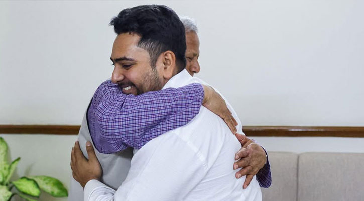 পদত্যাগের পর নাহিদকে জড়িয়ে ধরেন প্রধান উপদেষ্টা। ছবি: সংগৃহীত