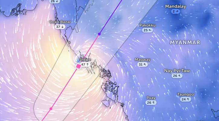 সংস্থাটি আরও জানায়, ঘূর্ণিঝড়টি বেলা সাড়ে ১১টায় সিত্তের প্রায় ৮০ মাইল দক্ষিণ-পশ্চিমে, মংডুর ৮৫ মাইল দক্ষিণ-দক্ষিণ-পশ্চিমে এবং রাখাইনের কিয়াকফিউ থেকে ১০০ মাইল পশ্চিমে অবস্থান করছিল।