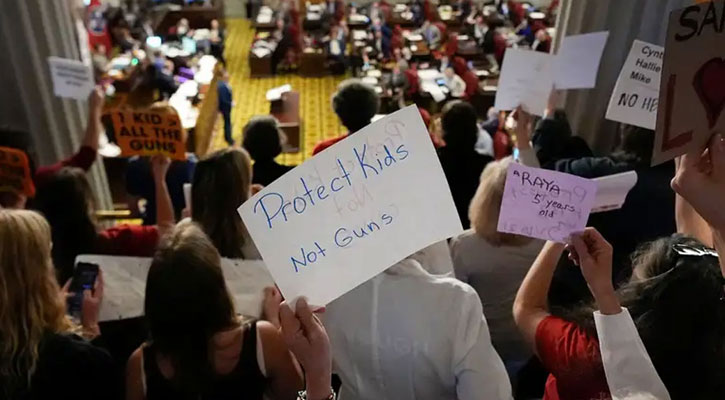 ডেমোক্র্যাট নেতা জাস্টিন জোনস বলেছেন, ‘রিপাবলিকান সহকর্মীরা আমাদের অঙ্গরাজ্যকে বন্দুকের নলের সামনে রাখছেন। তারা বন্দুক প্রস্তুতকারকদের সাহায্য করছেন। নৈতিক দিক থেকে এই সিদ্ধান্ত নেওয়া যায় না।’