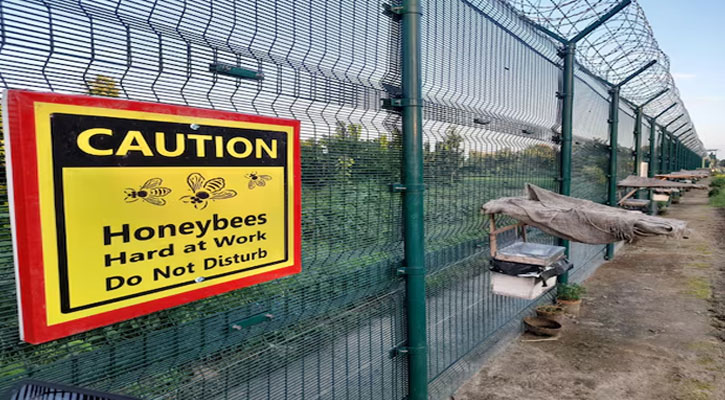 সংবাদমাধ্যমটিতে প্রকাশিত ছবিতে দেখা যাচ্ছে, সীমান্ত বেড়ায় বেশ কয়েকটি মৌ-বাক্স ঝুলিয়ে রাখা রয়েছে।