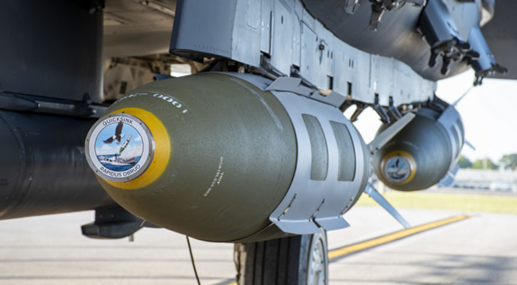 আমেরিকার এফ-১৫ যুদ্ধবিমানের ডানার নিচে যুক্ত করা জিবিইউ-৩১ জেড্যাম বোমা। ইসরায়েলের রয়েছে এফ-১৫ যুদ্ধবিমানের নিজস্ব একটি আধুনিকায়িত সংস্করণ- আইরাম। ছবি: দ্য এভিয়েশনিস্ট