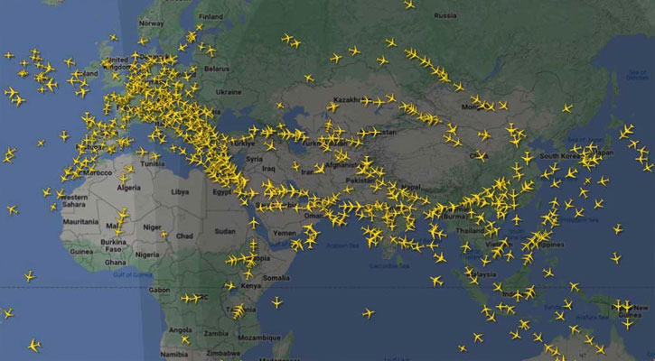 ফ্লাইট রেডারের তথ্য অনুযায়ী, বাংলাদেশ থেকে মিশরের কায়রোতে ফ্লাইট পরিচালনা করা ইজিপ্ট এয়ার এখন ভারত, আরব সাগর পাড়ি দিয়ে দুবাই হয়ে সৌদি আরব, জর্ডান, ইসরায়েলের আকাশসীমা ব্যবহার করে কায়রো পৌঁছাচ্ছে।