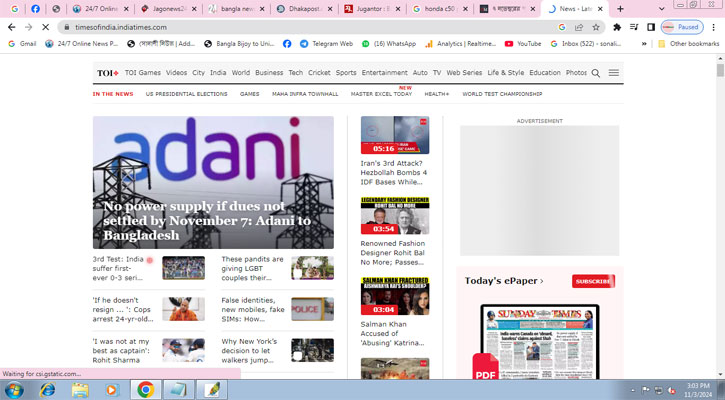 খাতসংশ্লিষ্ট সূত্রের বরাতে টাইমস অব ইন্ডিয়া বলছে, ডলার সংকটের কারণে সময়মতো অর্থ পরিশোধে হিমশিম খাচ্ছে বাংলাদেশ।