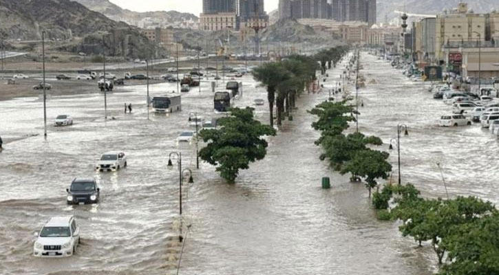 এদিকে সামাজিক যোগাযোগ মাধ্যমে প্রচারিত ভিডিওতে দেখা গেছে, বন্যার পানি রাস্তাঘাটের গাড়িগুলোকে ভাসিয়ে নিয়ে যাচ্ছে এবং ভবনগুলো ডুবে যাচ্ছে। প্রবল বৃষ্টি ও বজ্রঝড়ের কারণে পানি ক্রমশ বাড়ছে, যা সৌদি আরবে বিরল একটি দৃশ্য।