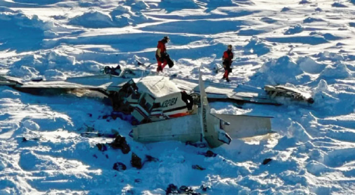 কোস্ট গার্ডের প্রকাশিত ছবিতে দেখা গেছে, বিমানের ধ্বংসাবশেষ আলাস্কার সাগরের বরফের ওপরে ছড়িয়ে-ছিটিয়ে রয়েছে। উজ্জ্বল রঙের জরুরি পোশাক পরা দু’জন উদ্ধারকর্মী ঘটনাস্থলে উপস্থিত ছিলেন।
