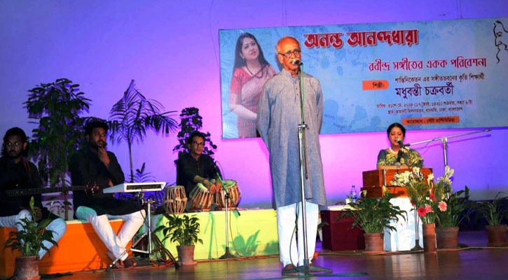 শান্তিনিকেতনের মেধাবী শিল্পী মধুবন্তী চক্রবর্তী ‘অনন্ত আনন্দধারা’ শিরোনামে একে একে গেয়েছেন— বারতা পেয়েছি মনে মনে, বহে নিরন্তন আনন্দধারা, মেঘ বলেছে যাব যাব, ওহে সুন্দর মম গৃহে, যেত যেতে একলা পথে, আমারে তুমি অশেষ করেছ, জগৎ আনদযজ্ঞ-সহ ১৫টি রবীন্দ্রসংগীত।