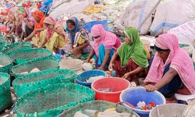 ময়লা আবর্জনার স্তূপ থেকে সংগ্রহ করা পরিত্যক্ত প্লাস্টিকের বোতল বাছাই করে রিসাইক্লিংয়ের জন্য প্রস্তুত করছেন নারী শ্রমিকরা। এসব বোতল পরিষ্কার করে কাটিং মেশিনের মাধ্যমে টুকরো করে পাঠানো হয় ঢাকাতে।
