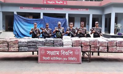 বিজিবি জানায়, সোমবার (৭ অক্টোবর) গোপন সংবাদের ভিত্তিতে সিলেট ব্যাটালিয়ন ৪৮ বিজিবির আওতাধীন বিভিন্ন বিওপির দায়িত্বপূর্ণ সীমান্তবর্তী এলাকায় পৃথক পৃথক অভিযান পরিচালনা করা হয়। অভিযানে টহলদল ৭৯৬ পিস ভারতীয় শাড়ি, ১৯ টি ভারতীয় গরু, ছয় হাজার ৪০ কেজি ভারতীয় চিনি, ১২০ কেজি পোস্তদানা, ৩৩৭ কেজি জিরা, ১৮৬ বোতল ভারতীয় মদ, ১০ বোতল বিয়ার, ১টি মাহিন্দ্রা, দুই হাজার ১৩৩ কেজি বাংলাদেশি রসুন সহ অন্যান্য মালামাল আটক করা হয়েছে। যেগুলোর আনুমানিক বাজারমূল্য এক কোটি ৪৫ লাখ ৩৪ হাজার ১০০ টাকা।