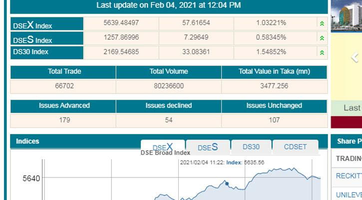 এদিকে ডিএসই’র ব্রড ইনডেক্স ৫৭ পয়েন্ট বেড়ে দাঁড়িয়েছে ৫৬৩৯ পয়েন্টে। আর ডিএসই শরিয়াহ সূচক ৭ পয়েন্ট কমে ১২৫৭ পয়েন্ট এবং ডিএসই-৩০ সূচক ৩৩ পয়েন্ট বেড়ে দাঁড়ায় ২১৬৯ পয়েন্টে।