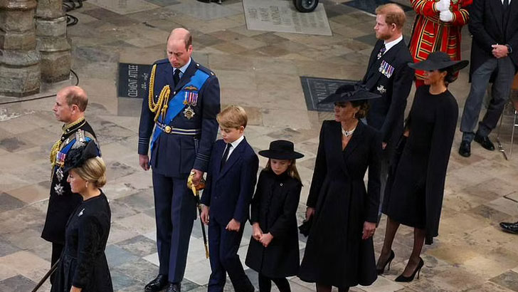 রানির শবমিছিলে সামিল হন বড় ছেলে রাজা তৃতীয় চার্লস, তার বোন প্রিন্সেস অ্যান, দুই ভাই প্রিন্স অ্যান্ড্রু ও প্রিন্স এডওয়ার্ড, যুবরাজ প্রিন্স অব ওয়েলস উইলিয়াম, প্রিন্স হ্যারিসহ ব্রিটিশ রাজ পরিবারের জ্যেষ্ঠ সদস্যরা।