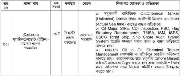 আবেদনের ঠিকানা: মহাব্যবস্থাপক, শিপ পার্সোনেল বিভাগ, বাংলাদেশ শিপিং কর্পোরেশন, বিএসসি ভবন, পোস্ট বক্স নং-৬৪১, সল্টগোলা রোড, চট্টগ্রাম।