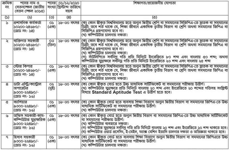 বয়স: ০১ মার্চ ২০২০ তারিখে ১৮-৩০ বছর। বিশেষ ক্ষেত্রে ৩২ বছর