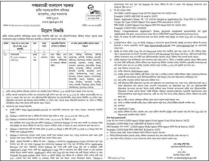 ঢাকা: জনবল নিয়োগের বিজ্ঞপ্তি প্রকাশ করেছে স্থানীয় সরকার প্রকৌশল অধিদপ্তর। ‘কার্যসহকারী’ পদে মোট ৪০০ জনকে নিয়োগ দেওয়া হবে। আগ্রহী যোগ্য প্রার্থীরা অনলাইনে আবেদন করতে পারবেন।