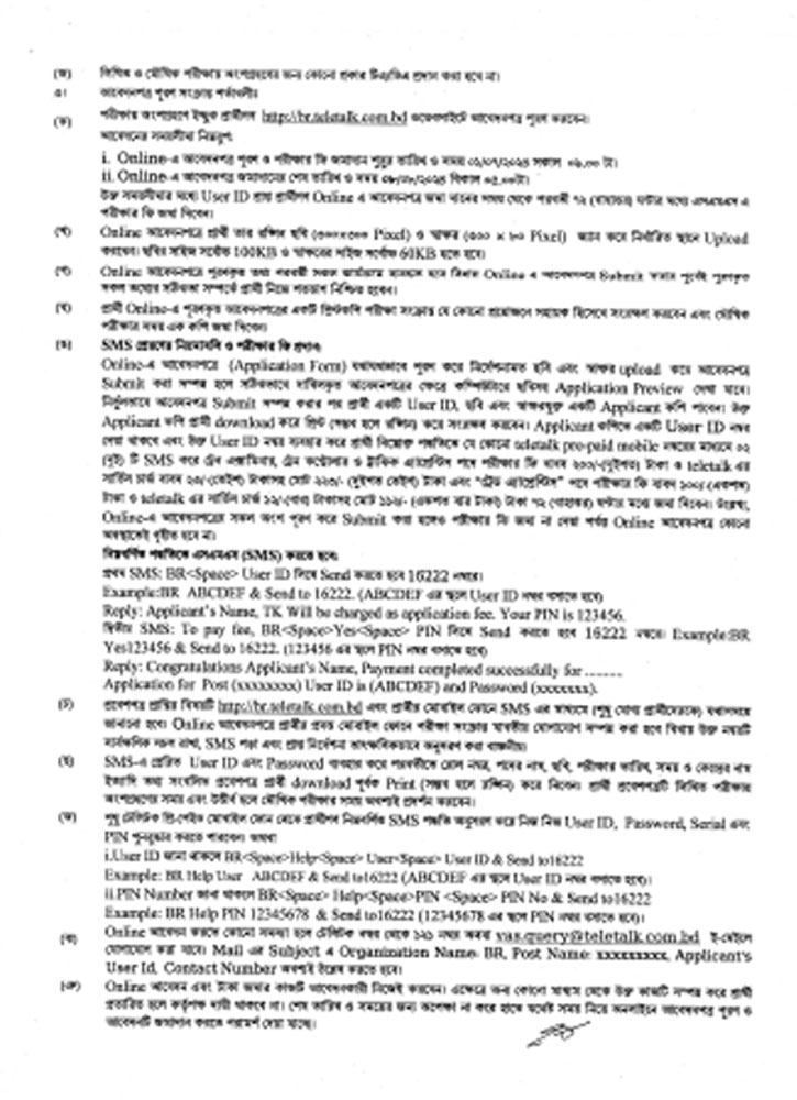 টেলিটক প্রি-পেইড সিমের মাধ্যমে ১-৩ নং পদের জন্য ২২৩ টাকা, ৪ নং পদের জন্য ১১২ টাকা অফেরতযোগ্য হিসেবে ৭২ ঘণ্টার মধ্যে পাঠাতে হবে।