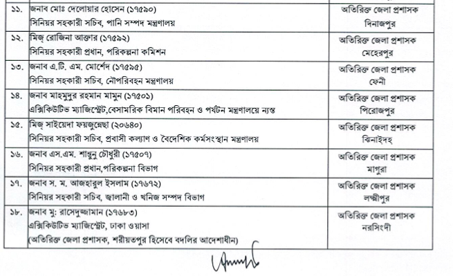 অতিরিক্ত জেলা প্রশাসক নিয়োগ পাওয়া কর্মকর্তাদের তালিকা নিতে তুলে ধরা হলো: