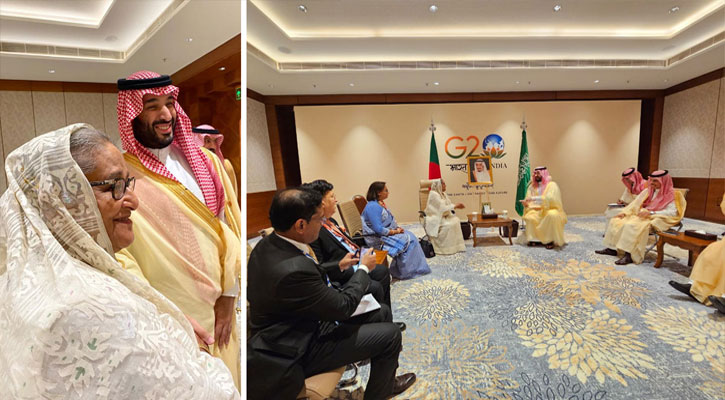 পররাষ্ট্র মন্ত্রণালয় জানিয়েছে, আজ সকালে নয়া দিল্লিতে জি-২০ শীর্ষ সম্মেলনের ফাঁকে সৌদি যুবরাজ ও প্রধানমন্ত্রীর দ্বিপক্ষীয় বৈঠক অত্যন্ত ফলপ্রসূ হয়েছে। যুবরাজ সালমান সাম্প্রতিক বছরগুলোতে বাংলাদেশে উল্লেখযোগ্য আর্থসামাজিক উন্নয়নে প্রধানমন্ত্রীর নেতৃত্বের প্রশংসা করেছেন।