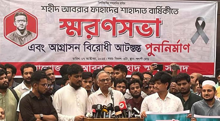 এর আগে বিকেল তিনটায় শাহবাগে নিরাপদ বাংলাদেশ প্লাটফর্মের ব্যানারে আয়োজিত সমাবেশে আবরার ফাহাদের বাবা বরকত উল্লাহ, আবরার ফাহাদ স্মৃতি সংসদের আহ্বায়ক আখতার হোসেন, আবরারের ভাই আবরার ফাইয়াজ, জাতীয় নাগরিক কমিটির আহবায়ক নাসির উদ্দিন পাটোয়ারী, বৈষম্যবিরোধী ছাত্র আন্দোলনের সমন্বয়ক হাসনাত আব্দুল্লাহ, ছাত্রশিবিরের ঢাকা বিশ্ববিদ্যালয় শাখার সভাপতি সাদিক কায়েম ও এবি পার্টির যুগ্ম সদস্য সচিব ব্যারিস্টার আসাদুজ্জামান ফুয়াদ বক্তব্য দেন।
