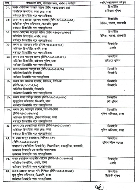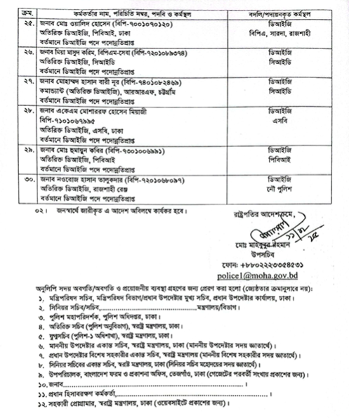 বদলি হওয়া ৩০ অতিরিক্ত ডিআইজি সম্প্রতি ডিআইজি পদে পদোন্নতি পান।
