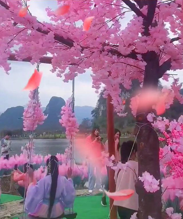 জিয়াও যখন তার লাভ আইল্যান্ড নষ্ট করার সিদ্ধান্ত নিয়েছিল তখন স্নেহের এই অস্বাভাবিক প্রদর্শনের গল্পটি বিশ্বর নজরে পড়েছিল। গ্রামে স্থানীয় এবং দর্শনার্থীরা ছবি তিুলে সোশ্যাল মিডিয়ায় ভাগ করে নিতে শুরু করে। দূর-দূরান্ত থেকে প্রেমিক প্রেমিকারা একে একে প্রথম দেখার জন্য আসতে শুরু করেন। অন্যথায় মিশ্রিত গুয়াংডং গ্রামে অবস্থিত এই গোলাপী মরুদ্যানের ছবিগুলি চীনা সোশ্যাল মিডিয়ায় ভাইরাল হতে শুরু করে। এইভাবে জিয়াও শো’র দুঃখের প্রেমের গল্পটি জানা গেল।