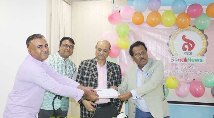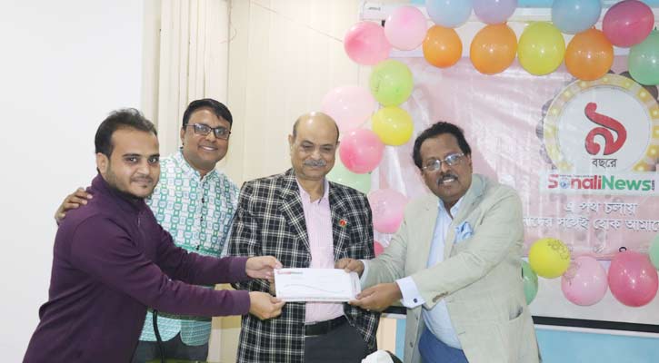 ঢাকা : ৯ বছরে পর্দাপন দিয়েছে দেশের অন্যতম শীর্ষ অনলাইন নিউজ পোর্টাল সোনালীনিউজ ডট কম। বর্ণাঢ্য আয়োজনে প্রতিষ্ঠাবার্ষিকী পালন করে প্রতিষ্ঠানটি। প্রতিষ্ঠাবার্ষিকীর পালনের দিনে ৮ সংবাদকর্মীকে পুরস্কৃত করা হয়। কাজের যথাযথ মূল্যায়নে কর্মীদের কর্মস্পৃহা এবং আন্তরিকতা বৃদ্ধি পায়-এই বিশ্বাস নিয়ে প্রতি মাসে সেরা সংবাদকর্মীকে পুরস্কৃত করা হচ্ছে।