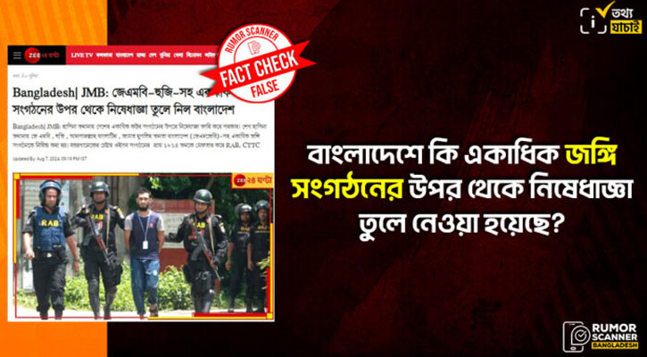 বাংলাদেশের রাজনৈতিক পটপরিবর্তনের পর বাংলাদেশে বেশ কিছু নিষিদ্ধ জঙ্গি সংগঠনের ওপর থেকে নিষেধাজ্ঞা তুলে নেওয়া হয়েছে বলে দাবি করে ভারতীয় গণমাধ্যম।