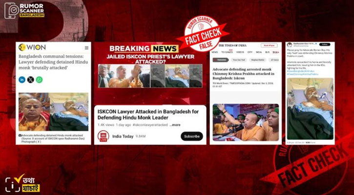 চিন্ময় দাসের গ্রেপ্তারকে কেন্দ্র করে হাসপাতালের চিকিৎসাধীন এক ব্যক্তির ছবি নিয়ে বিভিন্ন গুজব ছড়ানো হয়। দাবি করা হয়, ওই ব্যক্তি রমেন রায়, যিনি চিন্ময় কৃষ্ণ দাসের আইনজীবী। আরও বলা হয়, মুসলিমরা তার বাড়ি ভাঙচুর করে এবং হামলা চালিয়ে তাকে আইসিইউতে ভর্তি করেছে।