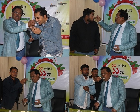 অনুষ্ঠানের শেষ পর্যায়ে সংবাদকর্মীরা একে অপরকে কেক খাইয়ে ১১তম বর্ষে পদার্পণের আনন্দ ভাগাভাগি করেন।