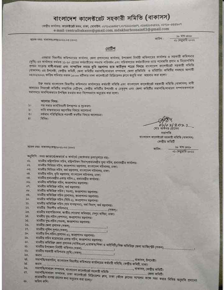 এদিকে মঙ্গলবার (১ ফেব্রুয়ারি) বাংলাদেশ কালেক্টরেট সহকারী সমিতি (বাকাসস) এক নোটিশে বিষয়টি নিয়ে জরুরি সভার আহ্বান জানিয়েছে।