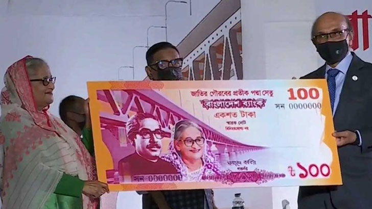 স্মারক ডাক টিকিট, স্মারক নোট উন্মোচন : পদ্মাসেতুর উদ্বোধন উপলক্ষে স্মারক ডাক টিকিট, স্মারক নোট, স্যুভেনির শিট, সিলমোহর ও উদ্বোধন খামের মোড়ক উন্মোচন করেছেন প্রধানমন্ত্রী শেখ হাসিনা।