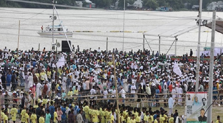 সকালে হেলিকপ্টারে করে মাওয়ায় পদ্মা সেতু সার্ভিস এরিয়ায় সুধী সমাবেশে যোগ দেন প্রধানমন্ত্রী শেখ হাসিনা।