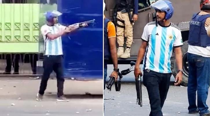 ঢাকা: রাজধানীর নয়াপল্টনে পুলিশের সঙ্গে গতকাল বিএনপির সংঘর্ষের সময় আর্জেন্টিনার জার্সি গায়ে শটগান হাতে এক ব্যক্তির ছবি সামাজিক যোগাযোগ মাধ্যমে ভাইরাল হয়েছে। তার পরিচয় কি- তা নিয়ে চলছে আলোচনা। তবে তাকে শনাক্তের চেষ্টা চলছে বলে জানিয়েছে পুলিশ।