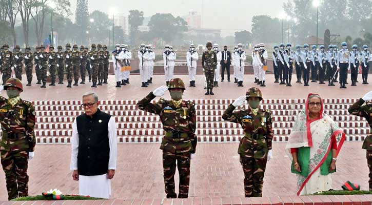 ঢাকা: সাভারে জাতীয় স্মৃতিসৌধে পুষ্পস্তবক অর্পণের মাধ্যমে মহান মুক্তিযুদ্ধের বীর শহীদদের প্রতি গভীর শ্রদ্ধা জানিয়েছেন রাষ্ট্রপতি মো. আবদুল হামিদ ও প্রধানমন্ত্রী শেখ হাসিনা।