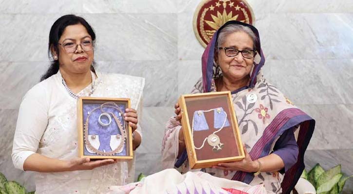 ঢাকা: কলাগাছের তন্তু থেকে তৈরি কলাবতী শাড়ি ও হস্তশিল্পজাত পণ্য গ্রহণ করেছেন প্রধানমন্ত্রী শেখ হাসিনা।