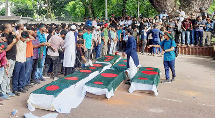 বুধবার (১৭ জুলাই) বিকেল চারটার দিকে শিক্ষার্থীরা কফিন ধরে শপথ করে বলেন, এই আন্দোলন আমরা বৃথা যেতে দেব না। দাবি আদায় না হওয়া পর্যন্ত আমরা এই আন্দোলন থেকে সরে যাব না।