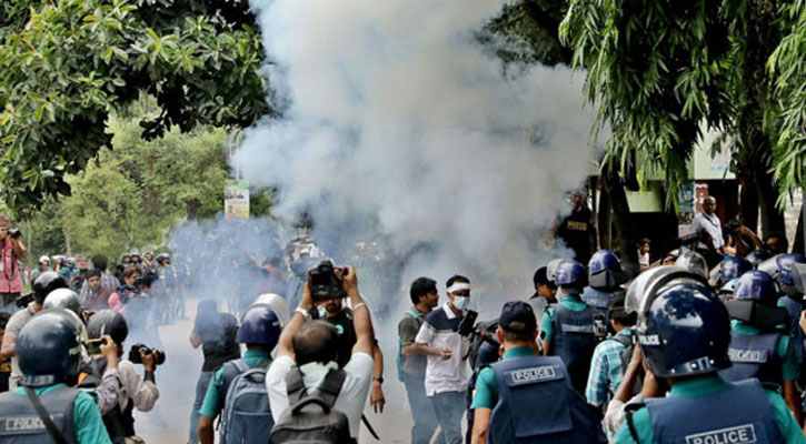 ঢাকা: ঢাকা বিশ্ববিদ্যালয়ের টিএসসিতে কোটা সংস্কার আন্দোলনকারী শিক্ষার্থীদের ছত্রভঙ্গ করতে সাউন্ড গ্রেনেডের বিস্ফোরণ ঘটিয়েছে পুলিশ। বুধবার (১৭ জুলাই) দুপুরের পর আন্দোলনকারীরা টিএসসিতে জড়ো হতে চাইলে পুলিশ দুটি সাউন্ড গ্রেনেডের বিস্ফোরণ ঘটিয়ে তাদের ছত্রভঙ্গ করে দেয়। এ সময় দুজন শিক্ষার্থী আহত হওয়ার খবর পাওয়া গেছে।