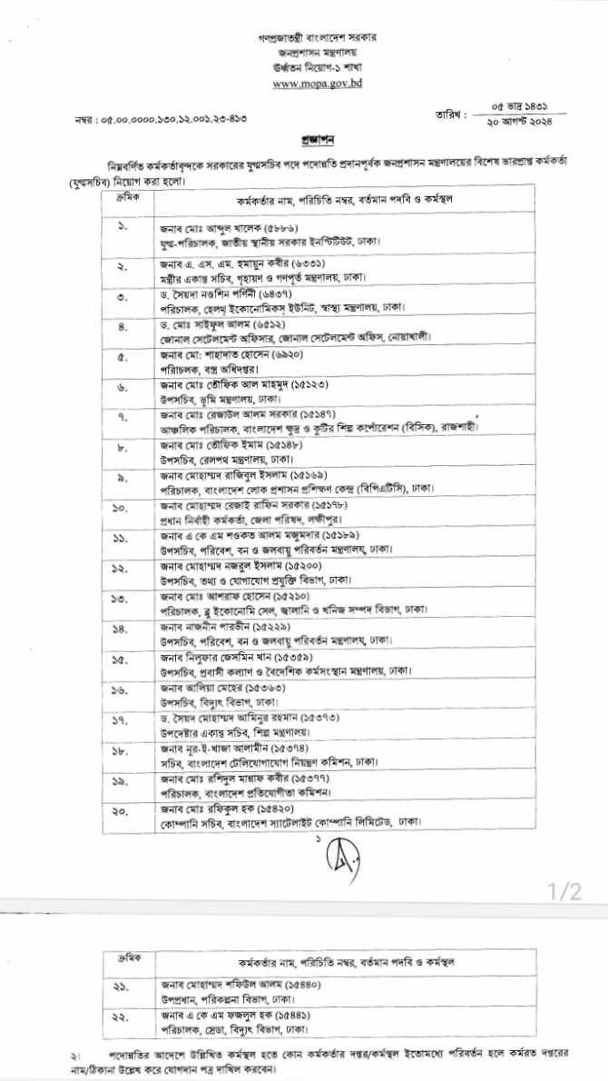 পরবর্তী সময়ে কোন কর্মকর্তার বিরুদ্ধে কোনোরকম বিরূপ/ভিন্নরূপ তথ্য পাওয়া গেলে, তার ক্ষেত্রে এই আদেশের প্রয়োজনীয় সংশোধন/বাতিল করার অধিকার কর্তৃপক্ষ সংরক্ষণ করে বলে প্রজ্ঞাপনে জানানো হয়েছে।