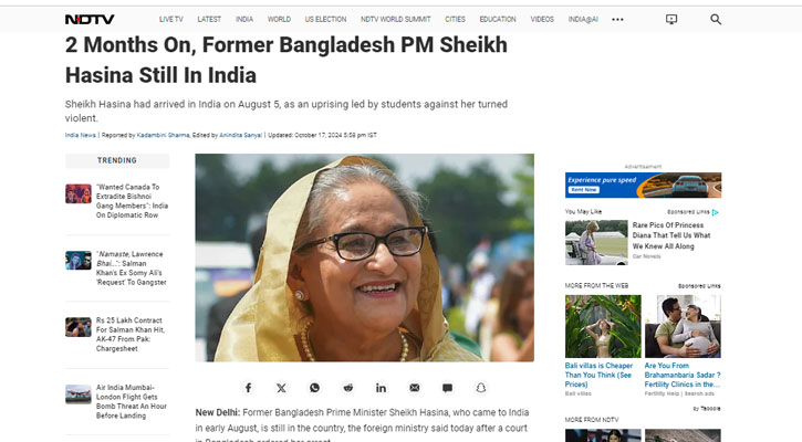 দেশটির গণমাধ্যম এনডিটির প্রতিবেদনে এতথ্য জানানো হয়েছে। প্রতিবেদনে বলা হয়েছে, শেখ হাসিনা শুরুতে ভারতে এসেছিলেন, এখনও দেশেই আছেন।