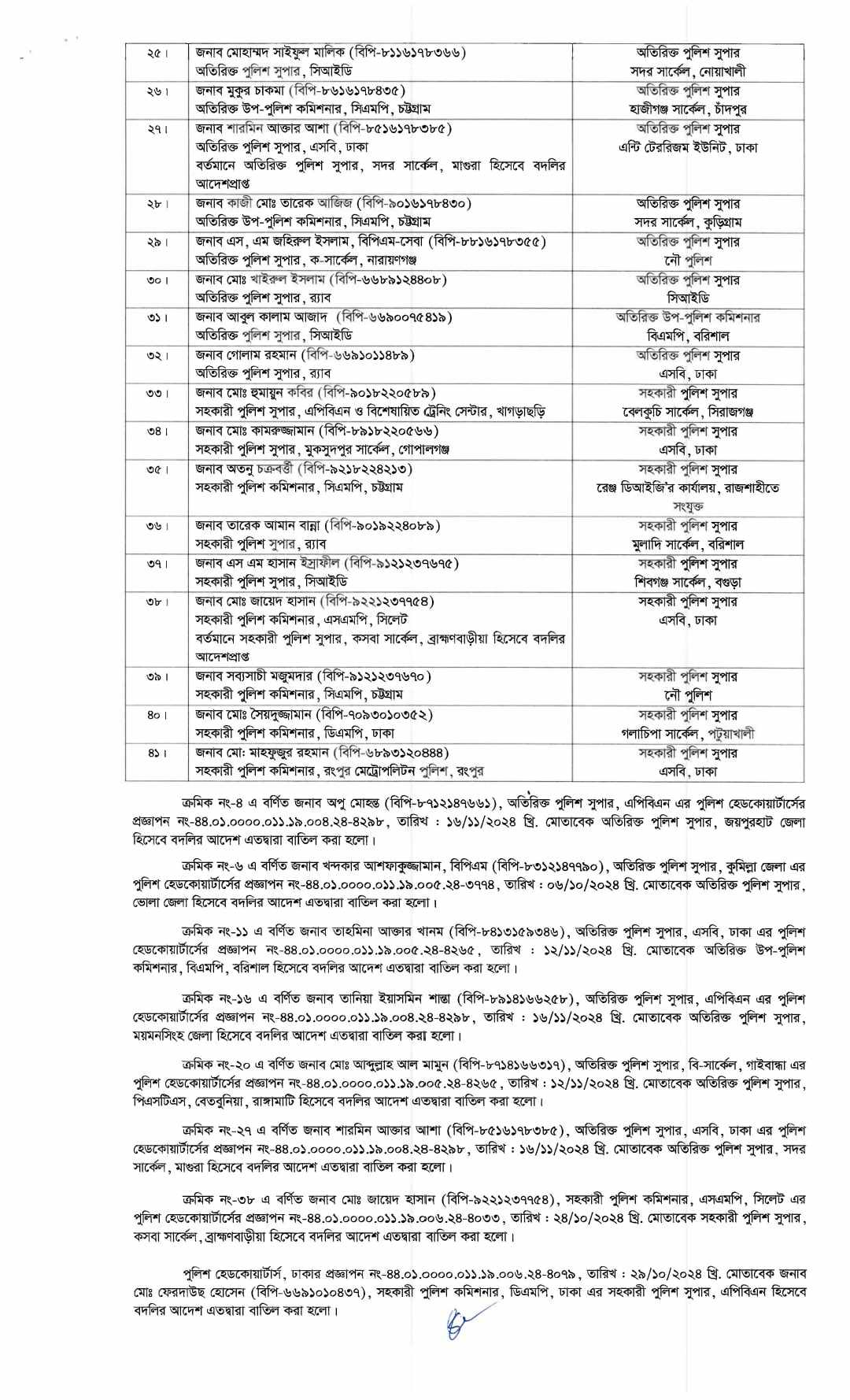রোববার (২ ডিসেম্বর) পুলিশ সদর দপ্তরের এক প্রজ্ঞাপনে তাদের বদলির আদেশ হয়েছে।