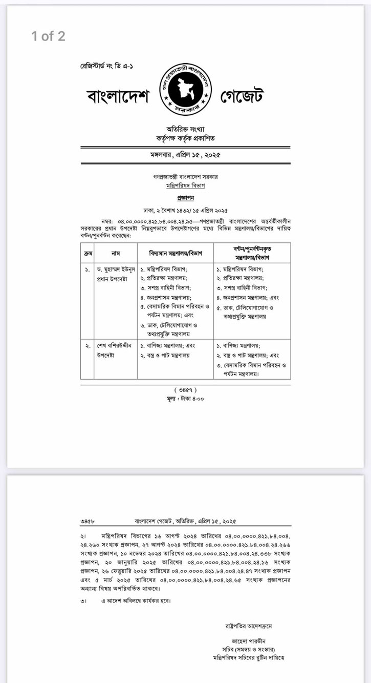 মঙ্গলবার (১৫ এপ্রিল) তাকে বিমান ও পর্যটন মন্ত্রণালয়ের উপদেষ্টার দায়িত্ব দিয়ে মন্ত্রপরিষদ বিভাগ থেকে প্রজ্ঞাপন জারি করা হয়েছে।