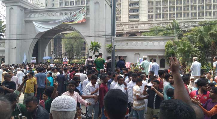 রোববার (১৮ মে) সকাল থেকে ঢাকা দক্ষিণ সিটি কর্পোরেশন নগরভবনের প্রধান ফটকের সামনে ‘ঢাকাবাসী’ ব্যানারে অবস্থান নিয়ে বিক্ষোভ করছেন আন্দোলনকারীরা।