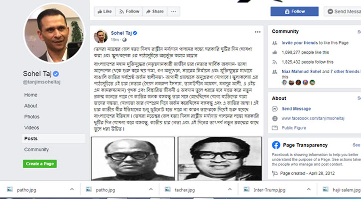 সোহেল তাজের স্ট্যাটাসটি হুবহু তুলে ধরা হল: