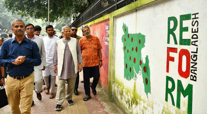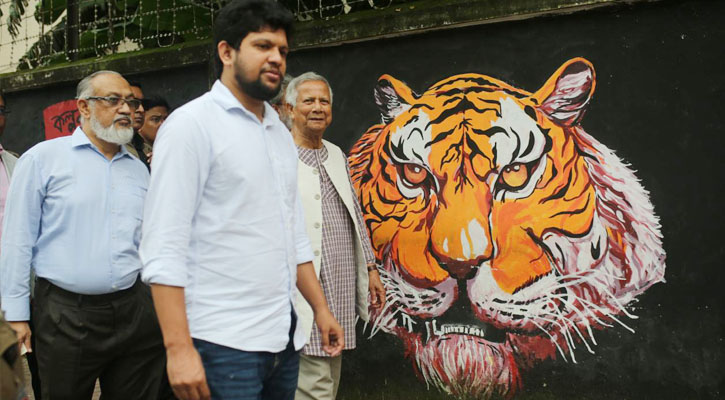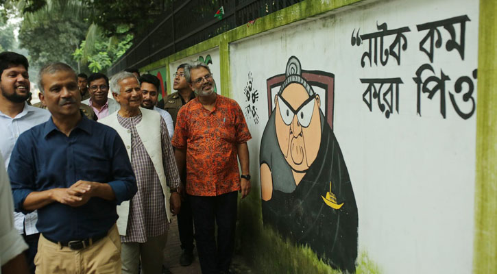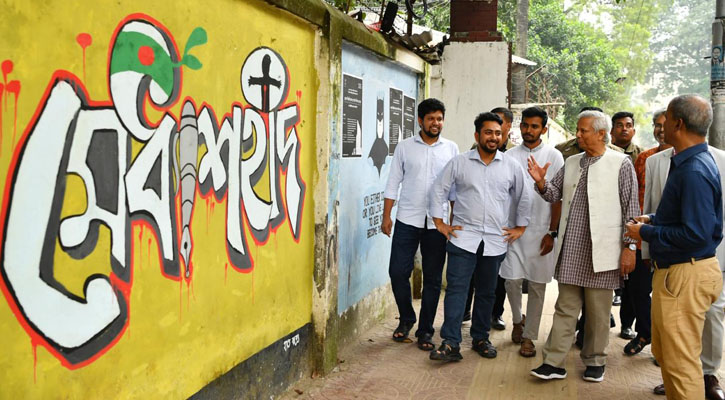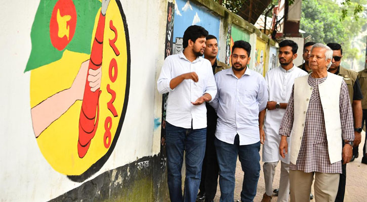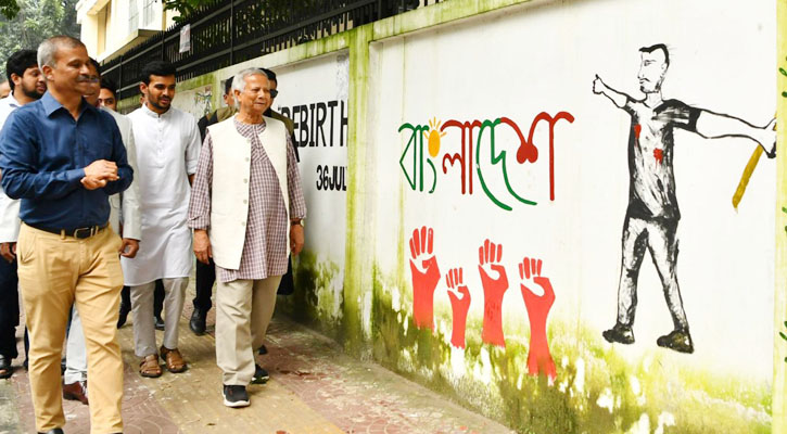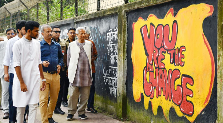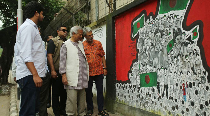 হেঁটে হেঁটে জুলাই বিপ্লবের গ্রাফিতি দেখলেন ড. ইউনূস