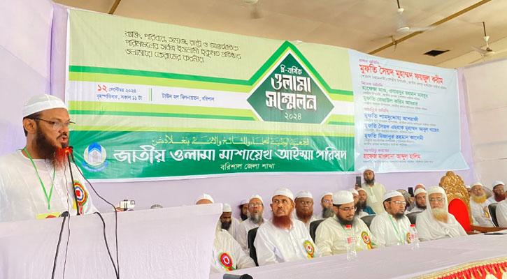 বৃহস্পতিরার (১২ সেপ্টেম্বর) দুপুরের দিকে নগরীর অশ্বিনী কুমার টাউন হলে জাতীয় ওলামা মাশায়েখ আইম্মা পরিষদ, বরিশাল জেলা শাখার আয়োজনে ব্যক্তি, পরিবার, সমাজ, রাষ্ট্র ও আন্তর্জাতিক পরিমন্ডলের সর্বত্র ইসলামী হুকুমত প্রতিষ্ঠায় ওলামায়ে কেরামের করনীয় শীর্ষক 'দ্বি-বার্ষিক ওলামা সম্মেলন শাখায় প্রধান অতিথির বক্তব্যে এই কথা বলেন তিনি।