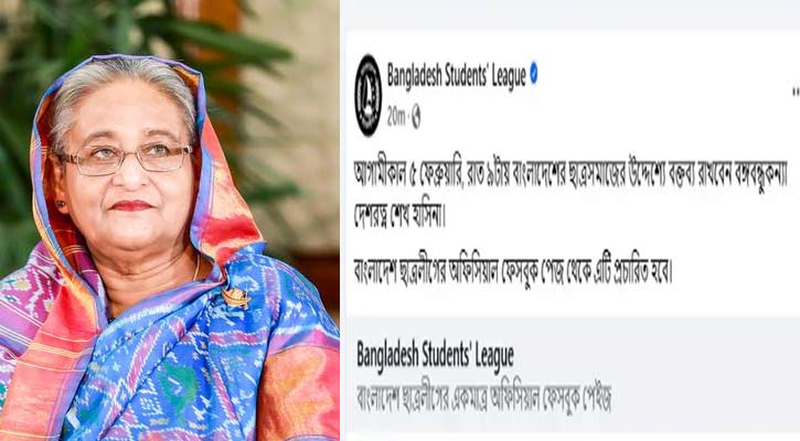 পোস্টে বলা হয়, বাংলাদেশ ছাত্রলীগের অফিসিয়াল ফেসবুক পেজ থেকে শেখ হাসিনার এই ভাষণ প্রচারিত হবে।