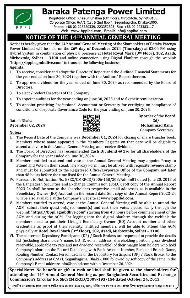 Notice of the 24th Annual General Meeting of Shahjalal Islami Bank PLC