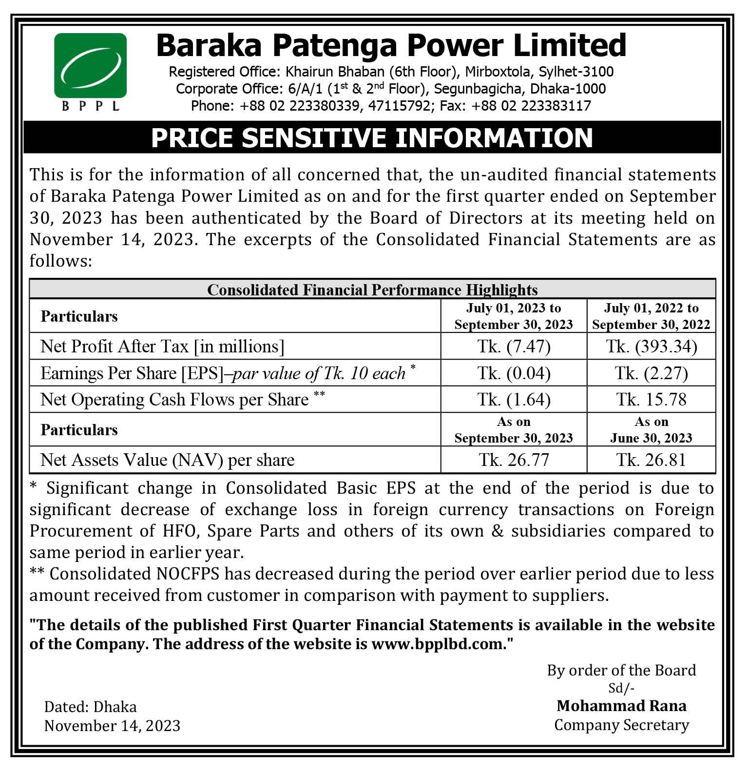 Price Sensitive Information : Sonali Paper and Board Mills Limited